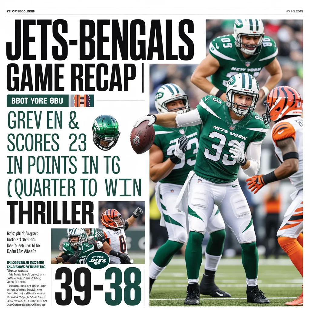 The Jets (1-7) battled back from an early deficit and scored a season-high 39 points to top the Bengals (3-5) in Cincinnati, 39-38. Trailing by 31-16 entering the fourth quarter, the Green & White scored 3 TDs and converted two 2-point conversion attempts to secure the victory as Aaron Glenn earned his first win as the head coach.